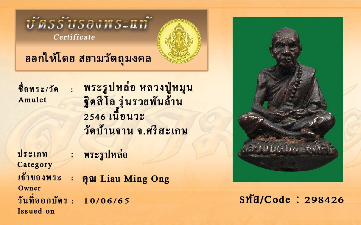 รหัสสินค้า : 298426 พระรูปหล่อ หลวงปู่หมุน ฐิตสีโล รุ่นรวยพันล้าน 2546 เนื้อนวะ วัดบ้านจาน จ.ศรีสะเกษ