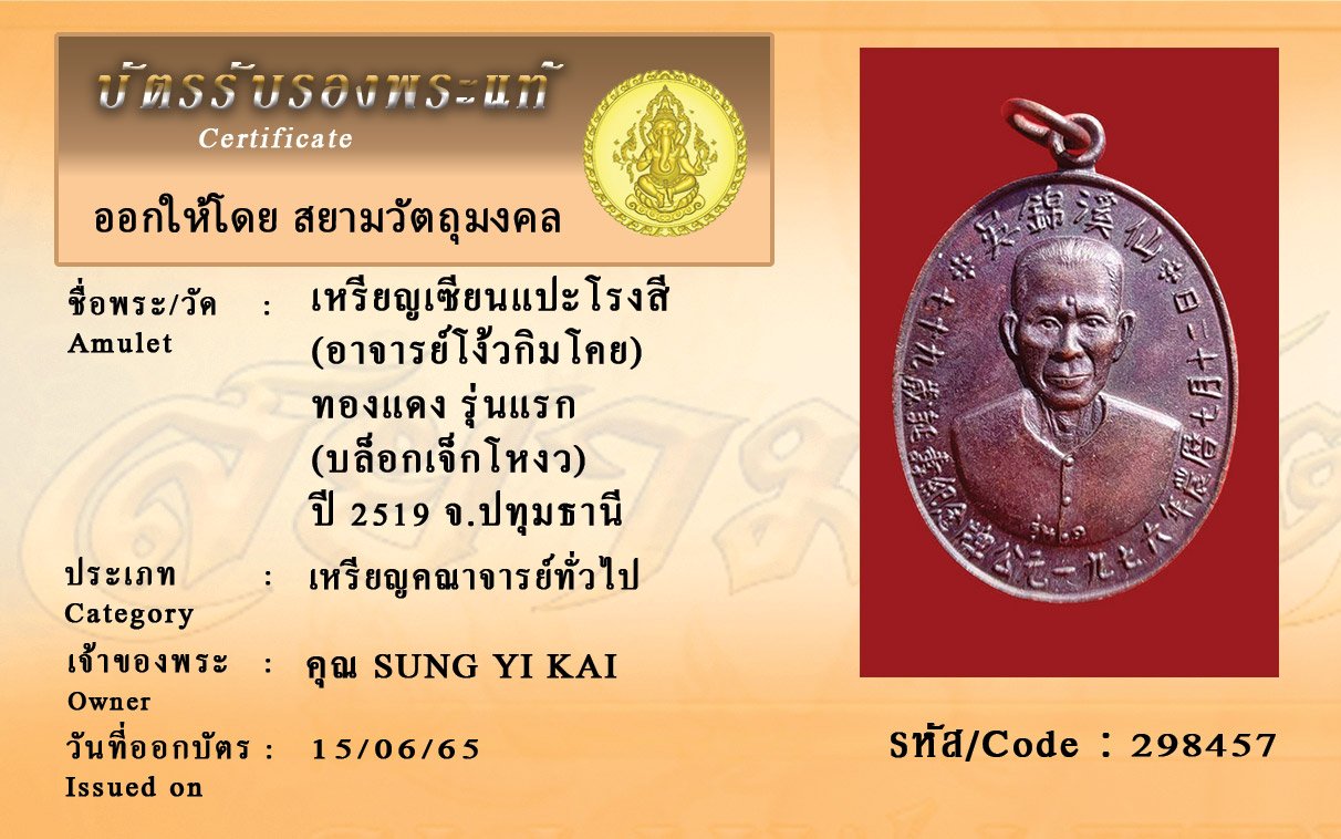 รหัสสินค้า : 298457 เหรียญเซียนแปะโรงสี (อาจารย์โง้วกิมโคย) ทองแดง รุ่นแรก (บล็อกเจ็กโหงว) ปี 2519 จ.ปทุมธานี