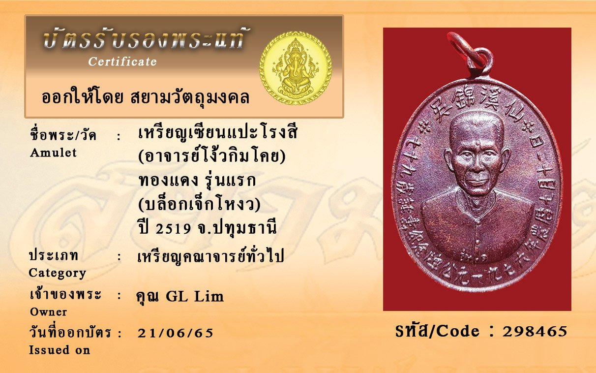 รหัสสินค้า : 298465 เหรียญเซียนแปะโรงสี (อาจารย์โง้วกิมโคย) ทองแดง รุ่นแรก (บล็อกเจ็กโหงว) ปี 2519 จ.ปทุมธานี