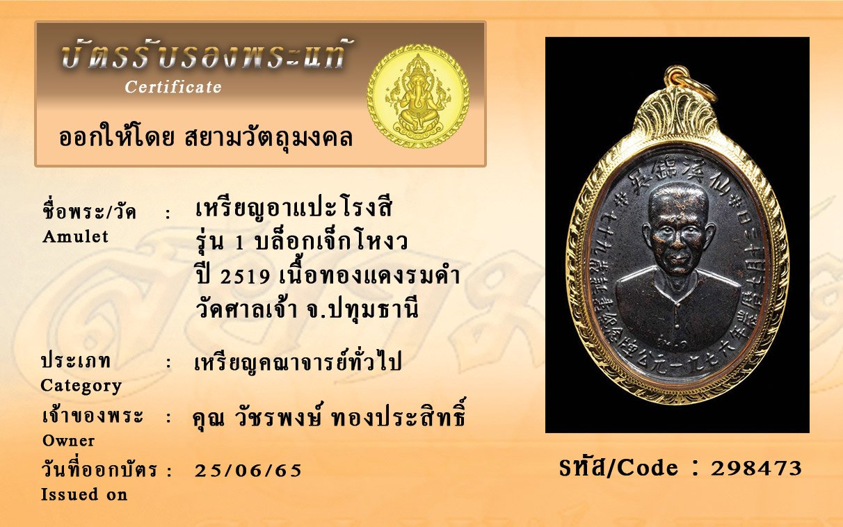 รหัสสินค้า : 298473 เหรียญอาแปะโรงสี รุ่น 1 บล็อกเจ็กโหงว ปี 2519 เนื้อทองแดงรมดำ วัดศาลเจ้า จ.ปทุมธานี