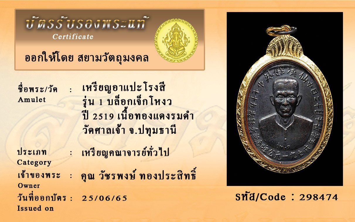 รหัสสินค้า : 298474 เหรียญอาแปะโรงสี รุ่น 1 บล็อกเจ็กโหงว ปี 2519 เนื้อทองแดงรมดำ วัดศาลเจ้า จ.ปทุมธานี