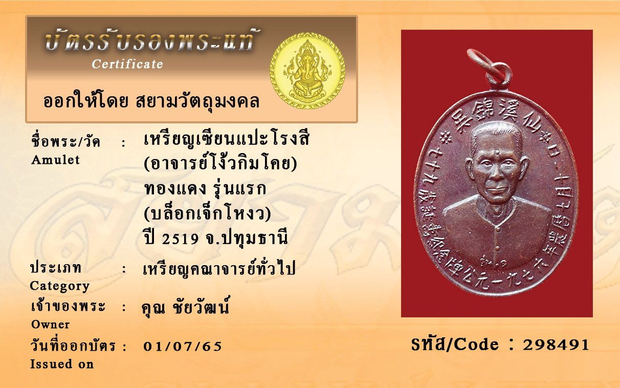รหัสสินค้า : 298491 เหรียญเซียนแปะโรงสี (อาจารย์โง้วกิมโคย) ทองแดง รุ่นแรก (บล็อกเจ็กโหงว) ปี 2519 จ.ปทุมธานี