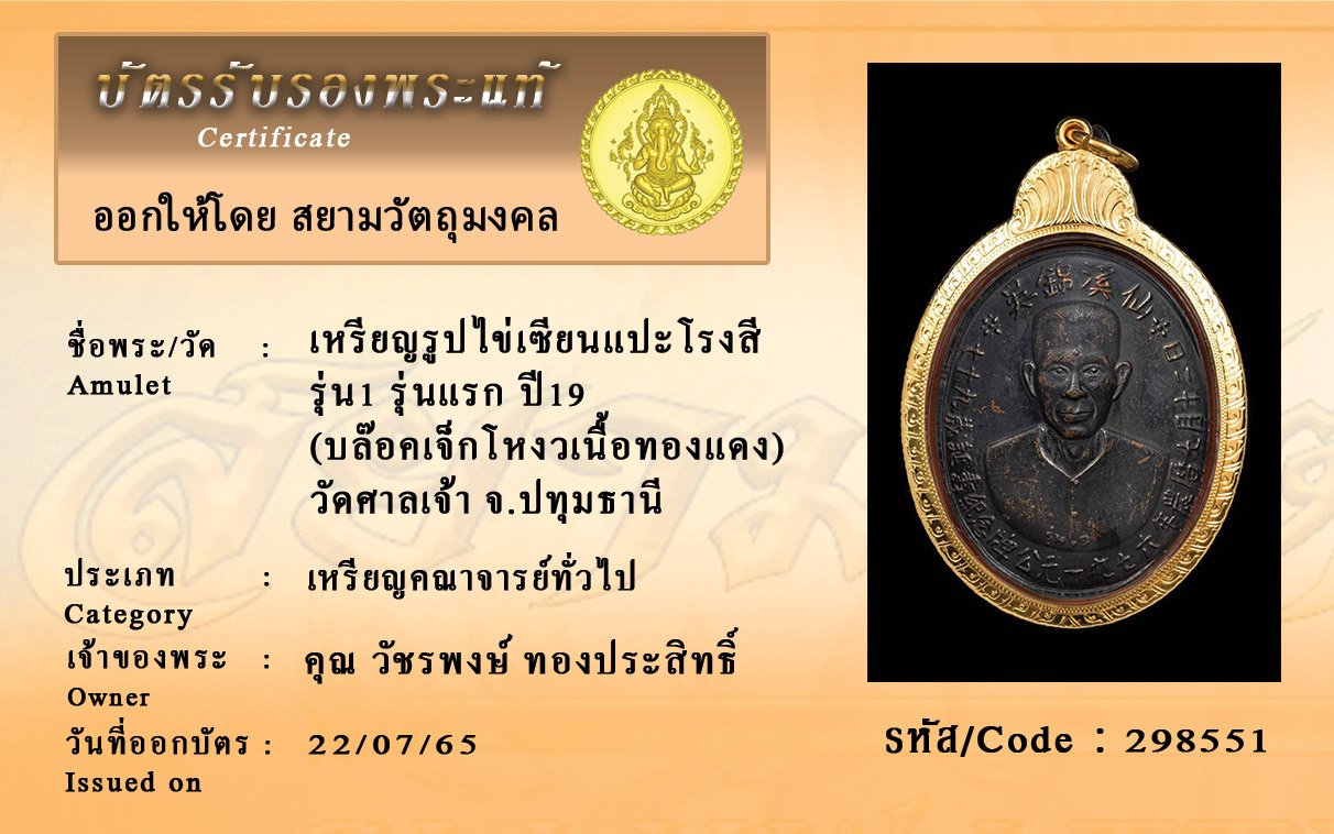 รหัสสินค้า : 298551 เหรียญรูปไข่เซียนแปะโรงสี รุ่น1 รุ่นแรก ปี19 (บล๊อคเจ็กโหงวเนื้อทองแดง) วัดศาลเจ้า จ.ปทุมธานี