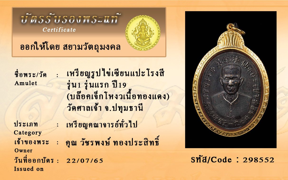 รหัสสินค้า : 298552 เหรียญรูปไข่เซียนแปะโรงสี รุ่น1 รุ่นแรก ปี19 (บล๊อคเจ็กโหงวเนื้อทองแดง) วัดศาลเจ้า จ.ปทุมธานี