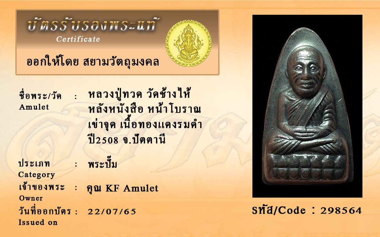 รหัสสินค้า : 298564 หลวงปู่ทวด วัดช้างไห้ หลังหนังสือ หน้าโบราณ เข่าจุด เนื้อทองเเดงรมดำ ปี2508 จ.ปัตตานี