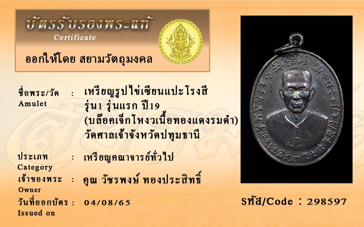 รหัสสินค้า : 298597 เหรียญรูปไข่เซียนแปะโรงสี รุ่น1 รุ่นแรก ปี19 (บล๊อคเจ็กโหงวเนื้อทองแดงรมดำ) วัดศาลเจ้าจังหวัดปทุมธานี