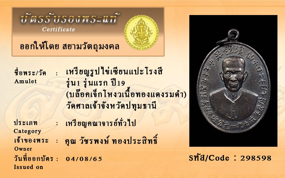 รหัสสินค้า : 298598 เหรียญรูปไข่เซียนแปะโรงสี รุ่น1 รุ่นแรก ปี19 (บล๊อคเจ็กโหงวเนื้อทองแดงรมดำ) วัดศาลเจ้าจังหวัดปทุมธานี