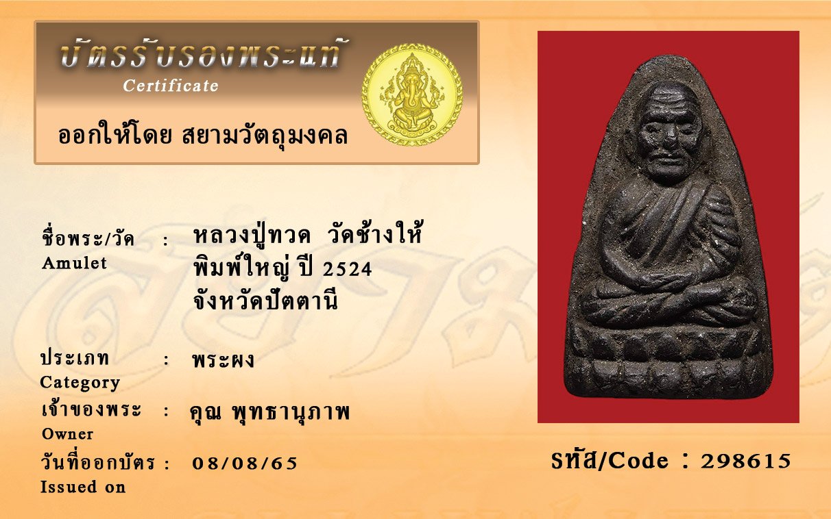 รหัสสินค้า : 298615 หลวงปู่ทวด วัดช้างให้ พิมพ์ใหญ่ ปี 2524 จังหวัดปัตตานี
