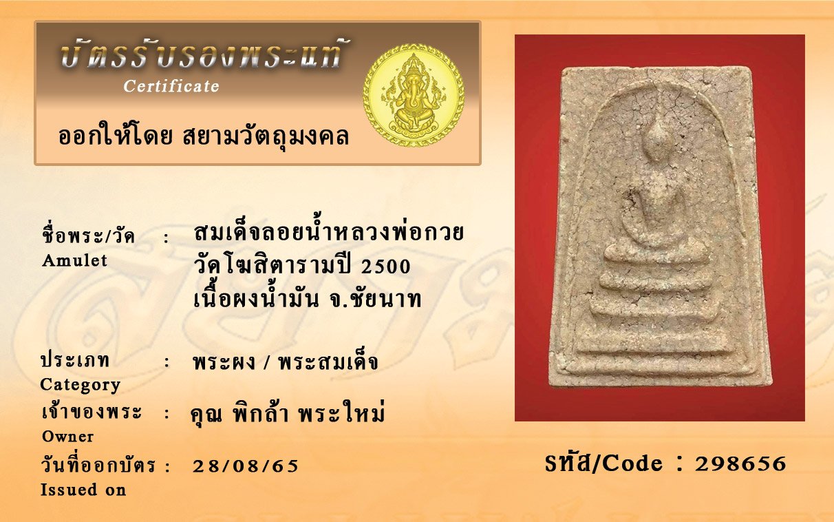 รหัสสินค้า : 298656 สมเด็จลอยน้ำหลวงพ่อกวย วัดโฆสิตารามปี 2500 เนื้อผงน้ำมัน จ.ชัยนาท