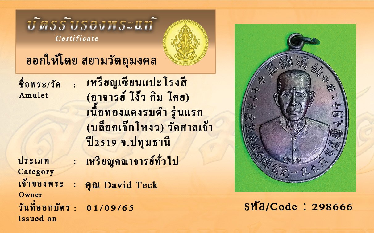 รหัสสินค้า : 298666 เหรียญเซียนแปะโรงสี (อาจารย์ โง้ว กิม โคย) วัดศาลเจ้า เนื้อทองแดงรมดำ รุ่นแรก (บล็อคเจ๊กโหงว) ปี2519 จ.ปทุมธานี