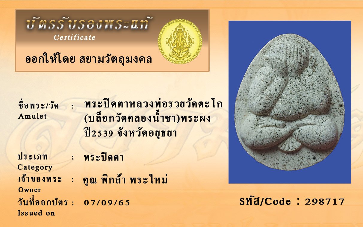 รหัสสินค้า : 298717 พระปิดตาหลวงพ่อรวยวัดตะโก (บล็อกวัดคลองน้ำชา)พระผง ปี2539 จังหวัดอยุธยา