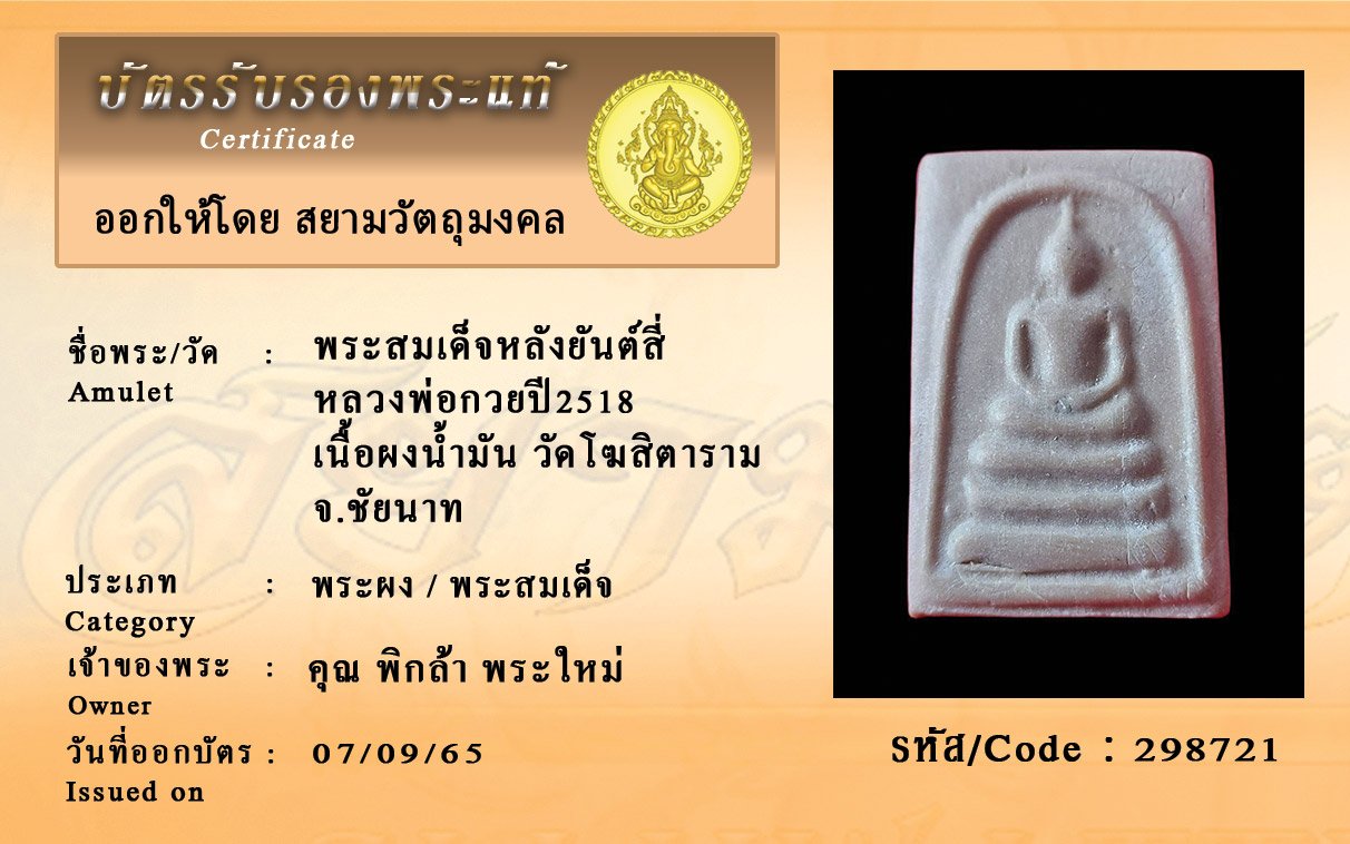 รหัสสินค้า : 298721 พระสมเด็จหลังยันต์สี่ หลวงพ่อกวยปี2518 เนื้อผงน้ำมัน วัดโฆสิตาราม จ.ชัยนาท