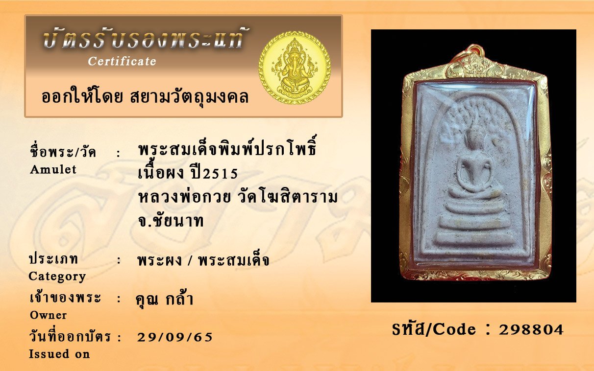 รหัสสินค้า : 298804 พระสมเด็จพิมพ์ปรกโพธิ์ เนื้อผง ปี2515 หลวงพ่อกวย วัดโฆสิตาราม จ.ชัยนาท