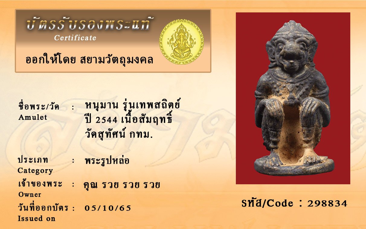 รหัสสินค้า : 298834 หนุมาน รุ่นเทพสถิตย์ ปี 2544 เนื้อสัมฤทธิ์ วัดสุทัศน์ กทม.