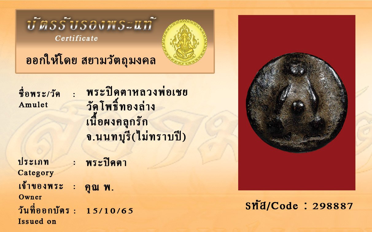 รหัสสินค้า : 298887 พระปิดตาหลวงพ่อเชย วัดโพธิ์ทองล่าง เนื้อผงคลุกรัก จ.นนทบุรี(ไม่ทราบปี)