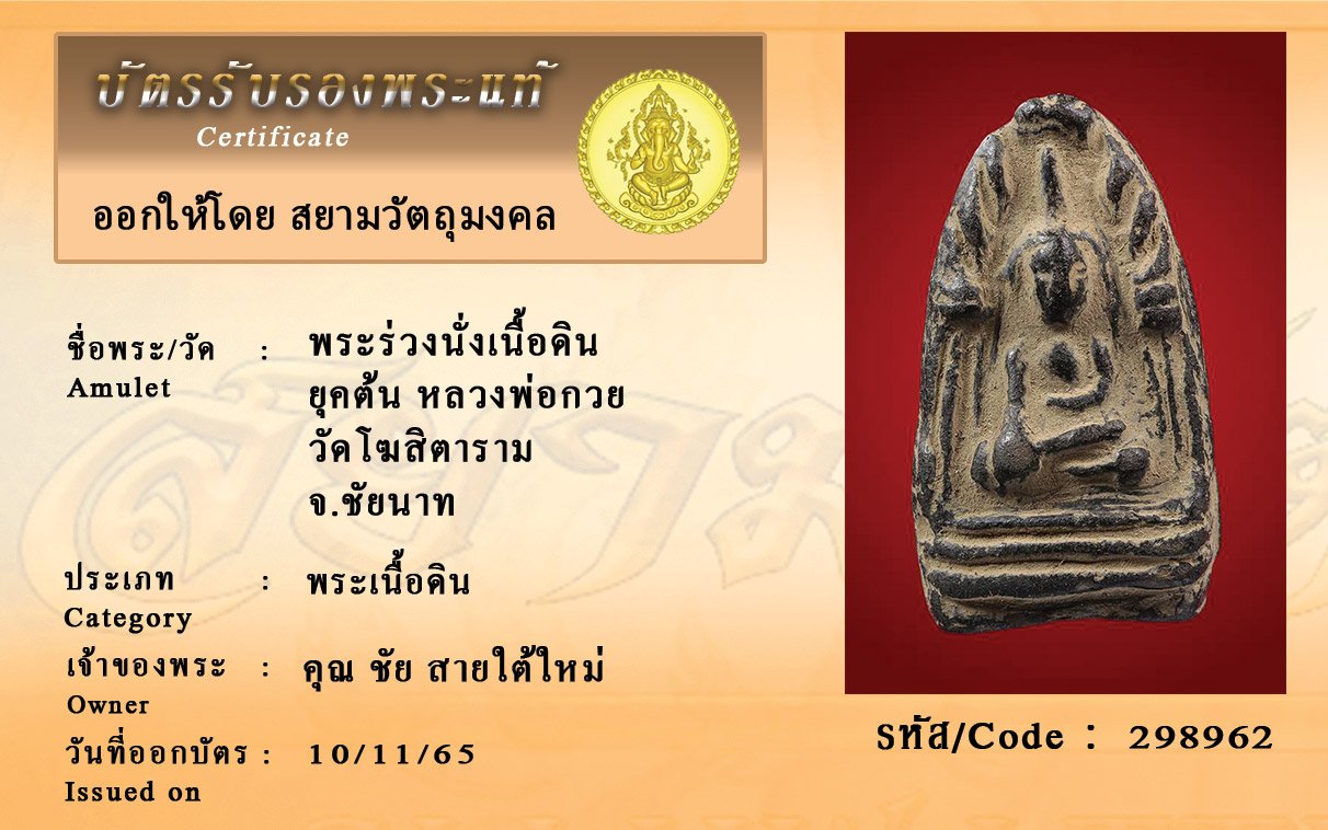 รหัสสินค้า : 298962 พระร่วงนั่งเนื้อดิน ยุคต้นหลวงพ่อกวย วัดโฆสิตาราม จ.ชัยนาท
