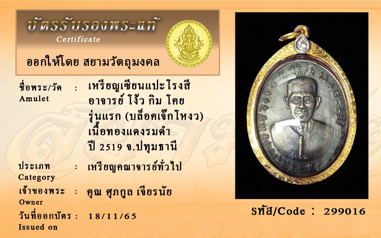 รหัสสินค้า : 299016 เหรียญเซียนแปะโรงสี อาจารย์ โง้ว กิม โคย รุ่นแรก (บล็อคเจ๊กโหงว) เนื้อทองแดงรมดำ ปี 2519 จ.ปทุมธานี