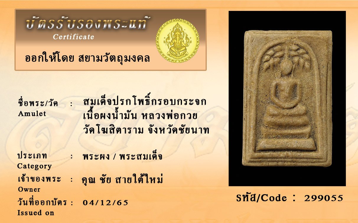 รหัสสินค้า : 299055 สมเด็จปรกโพธิ์กรอบกระจก เนื้อผงน้ำมัน หลวงพ่อกวย วัดโฆสิตาราม จังหวัดชัยนาท
