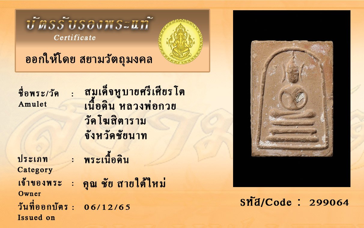 รหัสสินค้า : 299064 สมเด็จหูบายศรีเศียรโต เนื้อดิน หลวงพ่อกวย วัดโฆสิตาราม จังหวัดชัยนาท