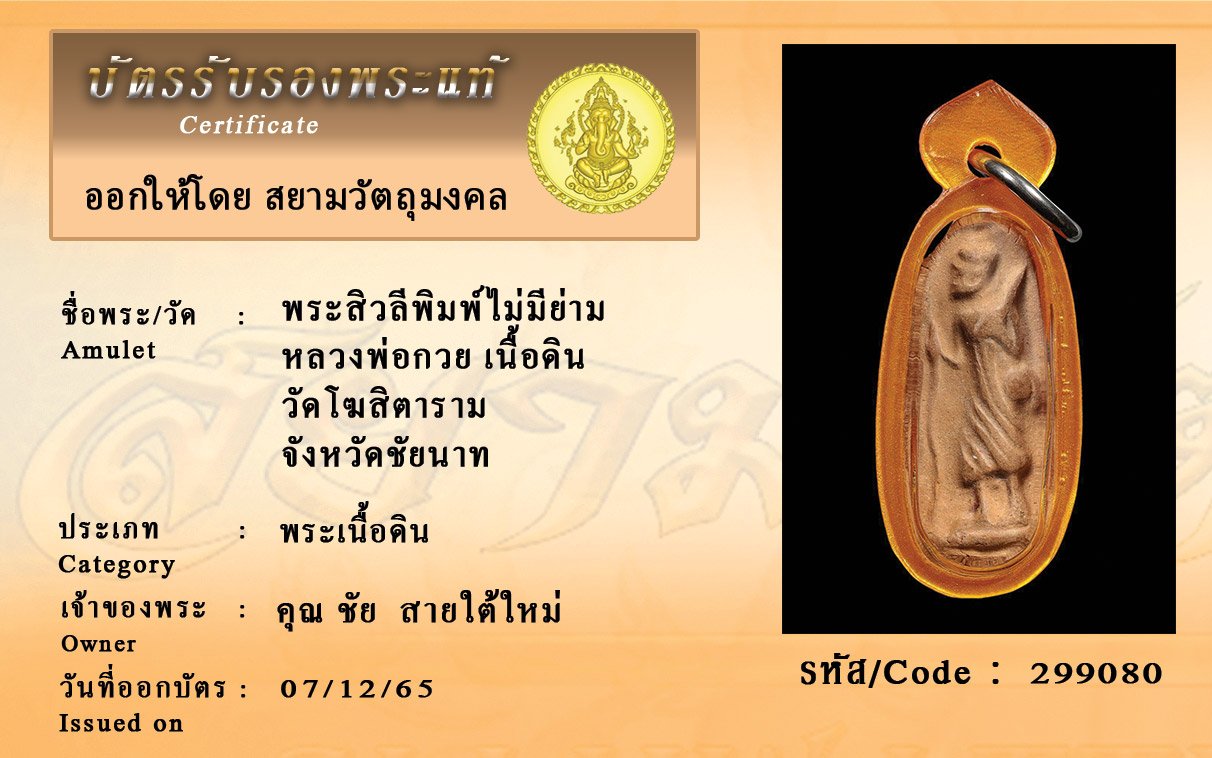 รหัสสินค้า : 299080 พระสิวลีพิมพ์ไม่มีย่าม หลวงพ่อกวย เนื้อดิน วัดโฆสิตาราม จังหวัดชัยนาท