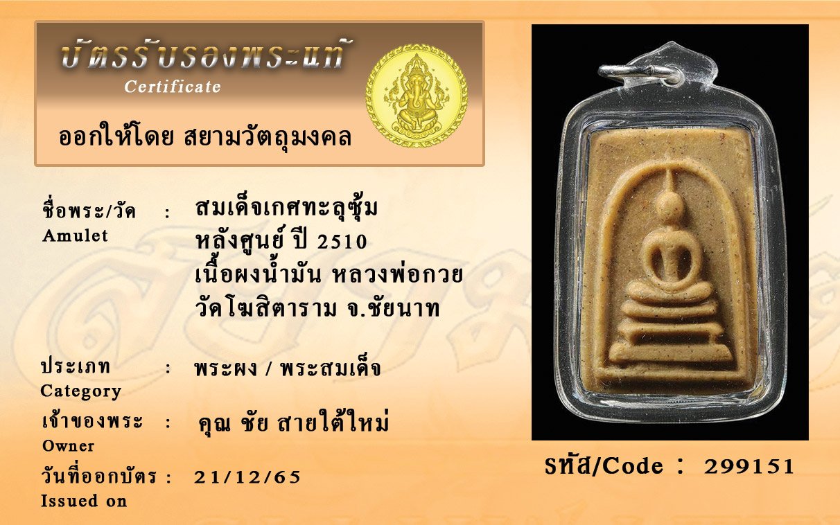รหัสสินค้า : 299151 สมเด็จเกศทะลุซุ้ม หลังศูนย์ ปี 2510 เนื้อผงน้ำมัน หลวงพ่อกวย วัดโฆสิตาราม จ.ชัยนาท