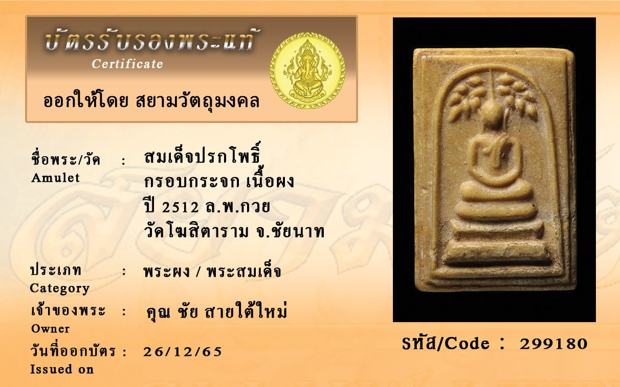 รหัสสินค้า : 299180 สมเด็จปรกโพธิ์ กรอบกระจก เนื้อผง ปี 2512 ล.พ.กวย วัดโฆสิตาราม จ.ชัยนาท