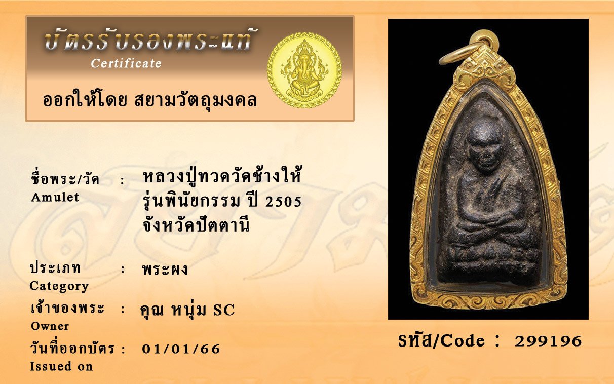 รหัสสินค้า : 299196 หลวงปู่ทวดวัดช้างให้ รุ่นพินัยกรรม ปี 2505 จังหวัดปัตตานี