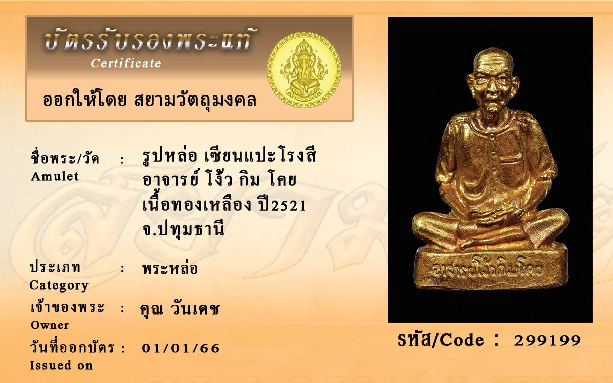 รหัสสินค้า : 299199 รูปหล่อ เซียนแปะโรงสี อาจารย์ โง้ว กิม โคย เนื้อทองเหลือง ปี2521 จ.ปทุมธานี