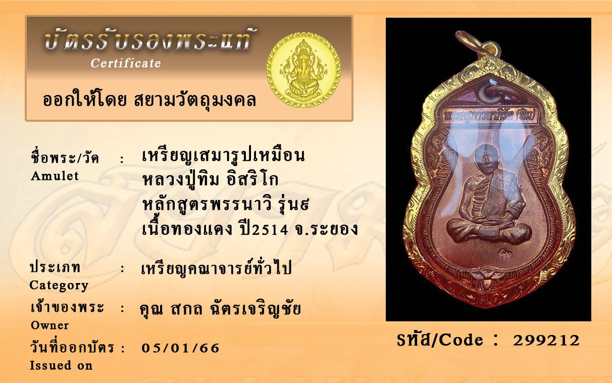 รหัสสินค้า : 299212 เหรียญเสมารูปเหมือน หลวงปู่ทิม อิสริโก หลักสูตรพรรนาวิ รุ่น๙ เนื้อทองแดง ปี2514 จ.ระยอง