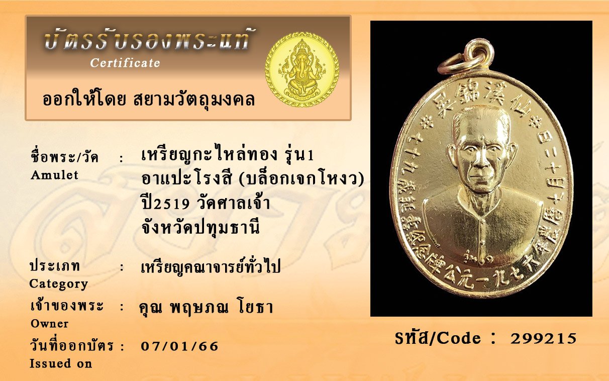 รหัสสินค้า : 299215 เหรียญกะไหล่ทอง รุ่น1 อาแปะโรงสี (บล็อกเจกโหงว) ปี2519 วัดศาลเจ้า จังหวัดปทุมธานี