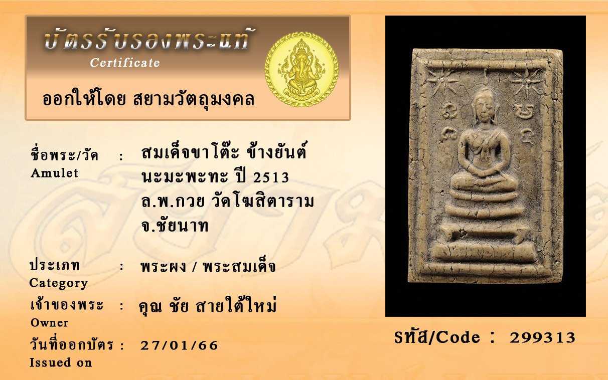 รหัสสินค้า : 299313 สมเด็จขาโต๊ะ ข้างยันต์ นะมะพะทะ ปี 2513 ล.พ.กวย วัดโฆสิตาราม จ.ชัยนาท
