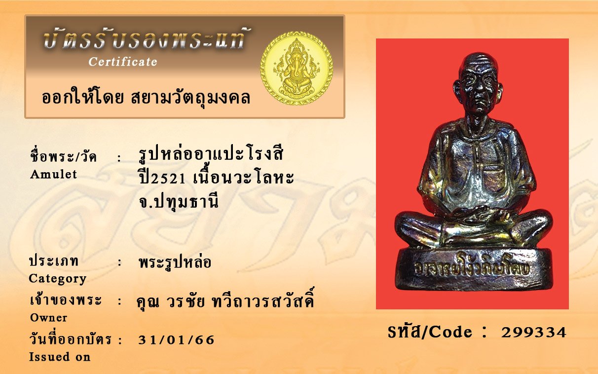 รหัสสินค้า : 299334 รูปหล่ออาแปะโรงสี ปี2521 เนื้อนวะโลหะ จ.ปทุมธานี