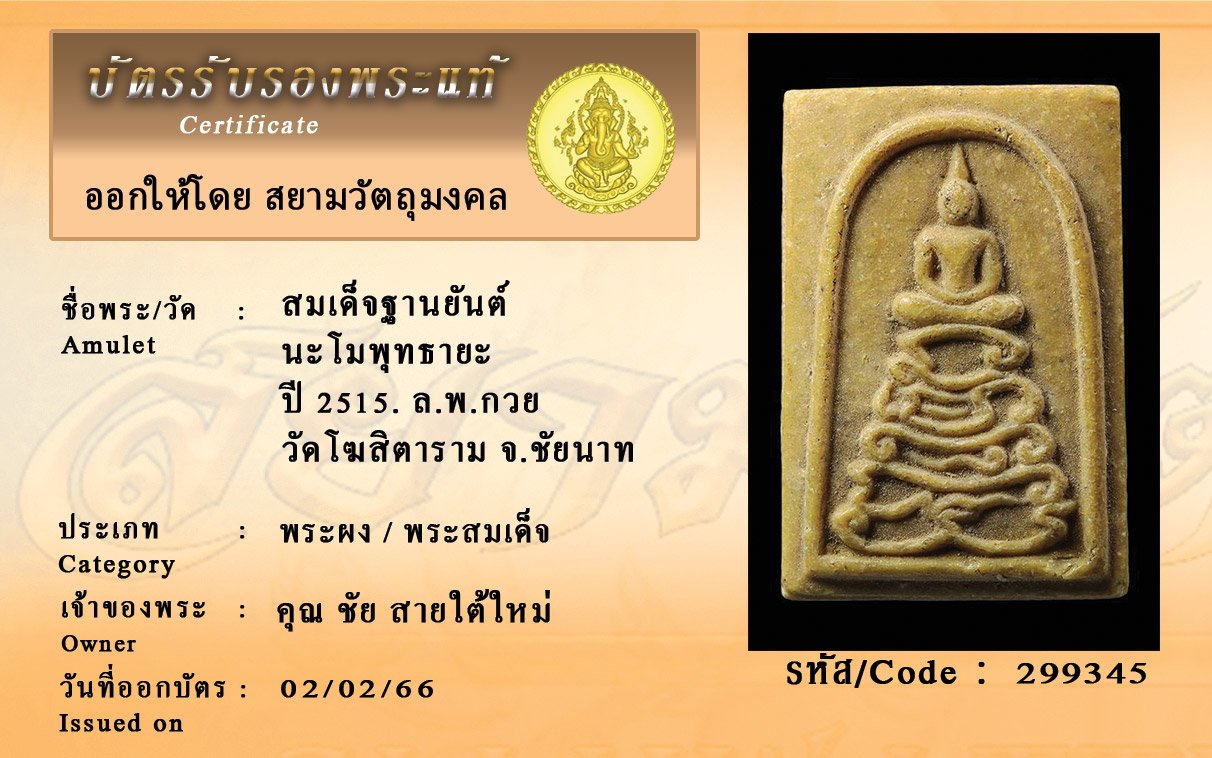 รหัสสินค้า : 299345 สมเด็จฐานยันต์ นะโมพุทธายะ ปี 2515. ล.พ.กวย วัดโฆสิตาราม จ.ชัยนาท