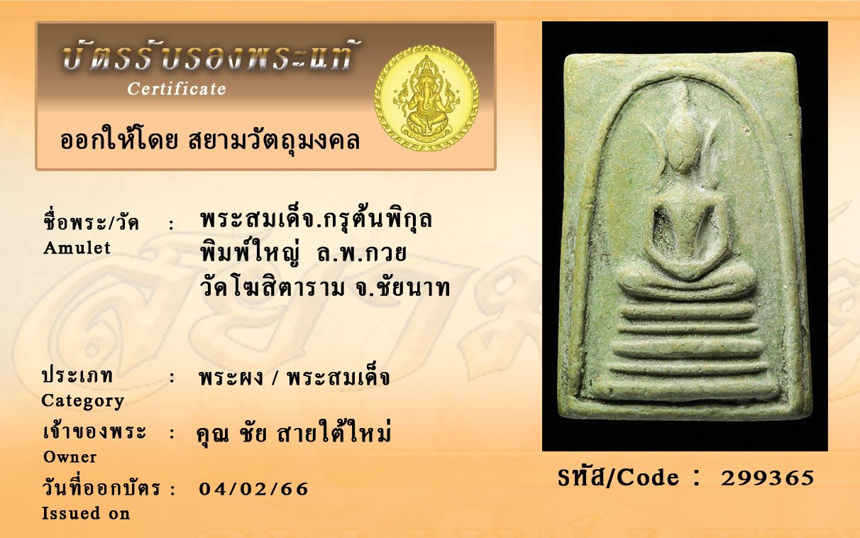 รหัสสินค้า : 299365 พระสมเด็จ.กรุต้นพิกุล พิมพ์ใหญ่ ล.พ.กวย วัดโฆสิตาราม จ.ชัยนาท