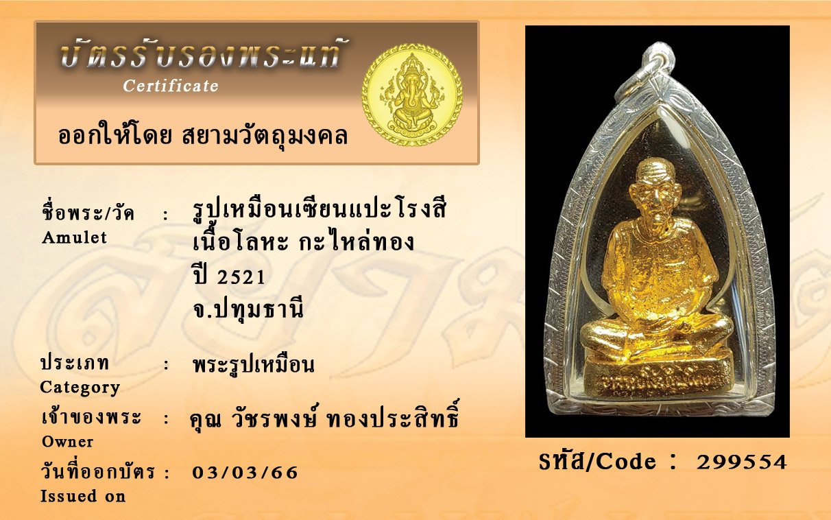 รหัสสินค้า : 299554 รูปเหมือนเซียนแปะโรงสี เนื้อโลหะ กะไหล่ทอง ปี 2521 จ.ปทุมธานี