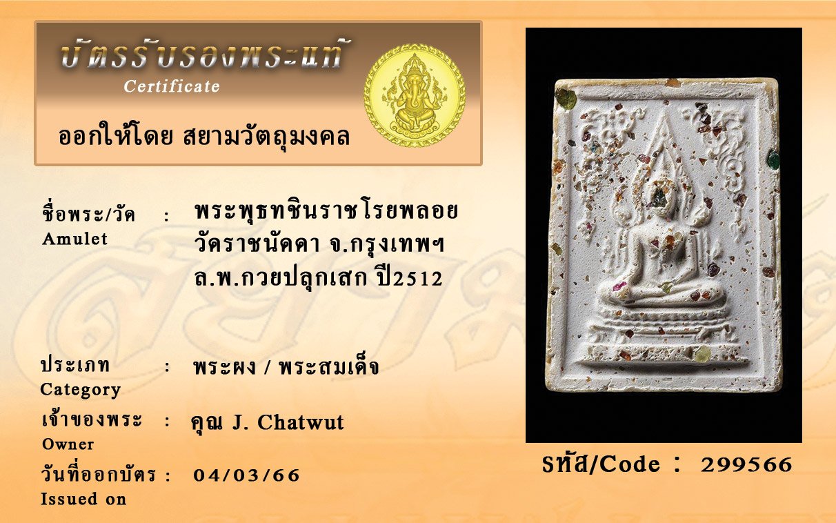 รหัสสินค้า : 299566 พระพุทธชินราชโรยพลอย วัดราชนัดดา จ.กรุงเทพฯ ล.พ.กวยปลุกเสก ปี2512