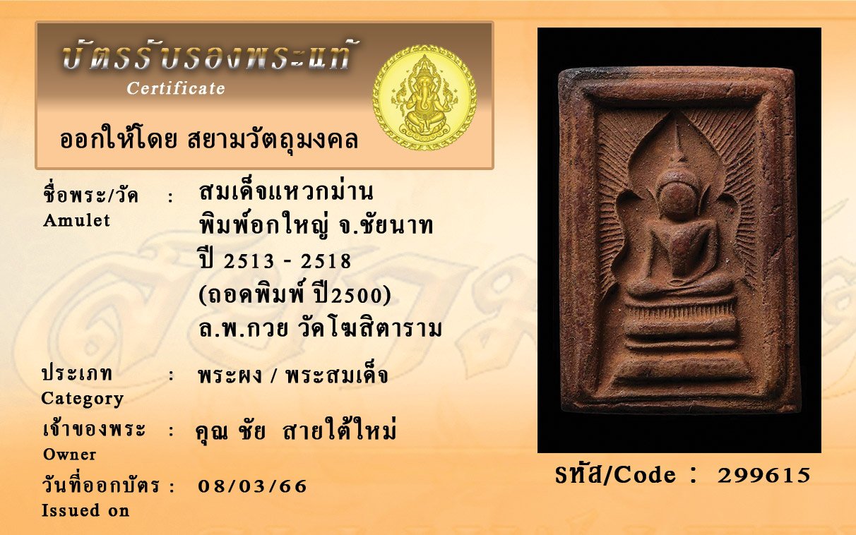 รหัสสินค้า : 299615 สมเด็จแหวกม่าน พิมพ์อกใหญ่ จ.ชัยนาท ปี 2513-2518 (ถอดพิมพ์ ปี2500) ล.พ.กวย วัดโฆสิตาราม