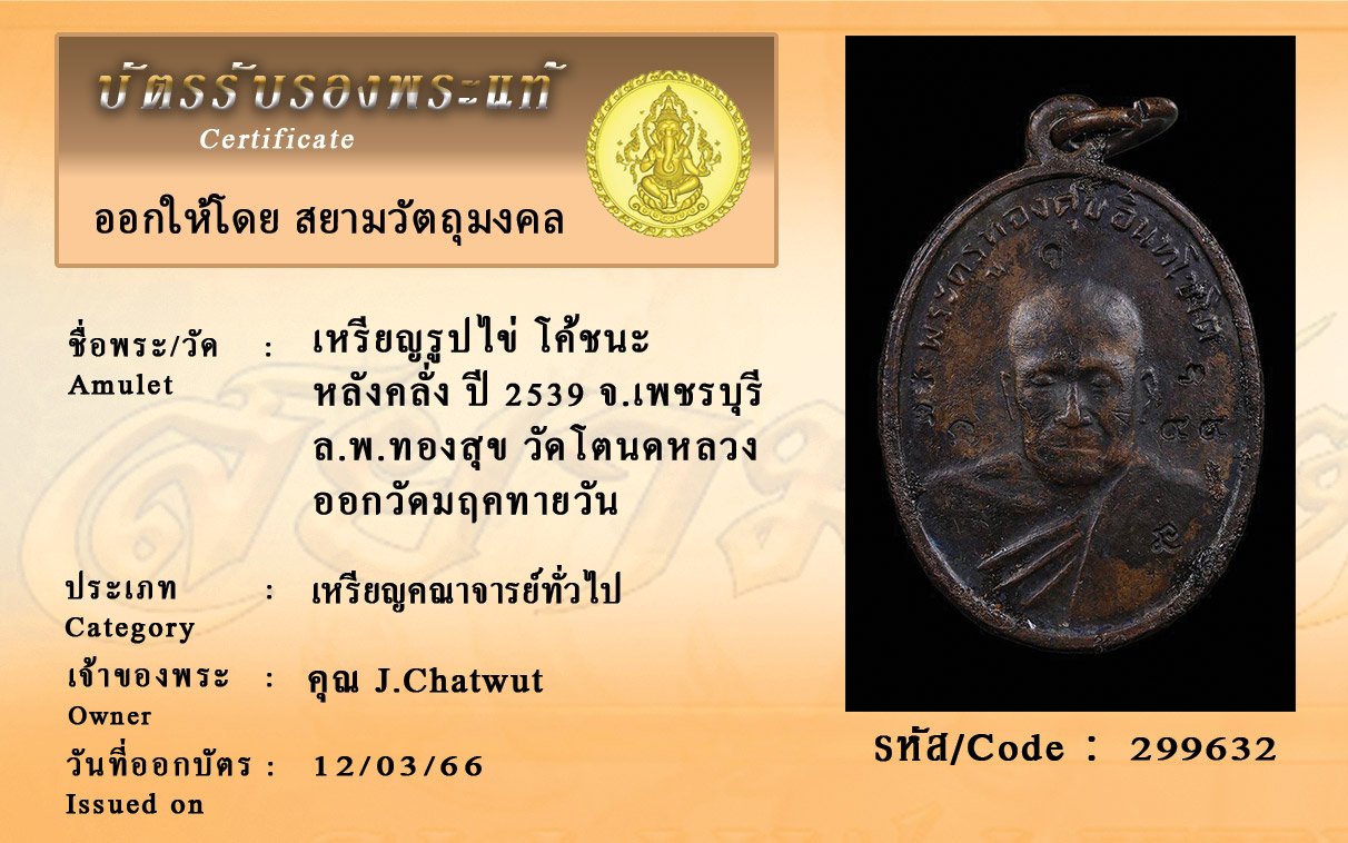 รหัสสินค้า : 299632 เหรียญรูปไข่ โค้ชนะ หลังคลั่ง ปี 2539 จ.เพชรบุรี ล.พ.ทองสุข วัดโตนดหลวง ออกวัดมฤคทายวัน