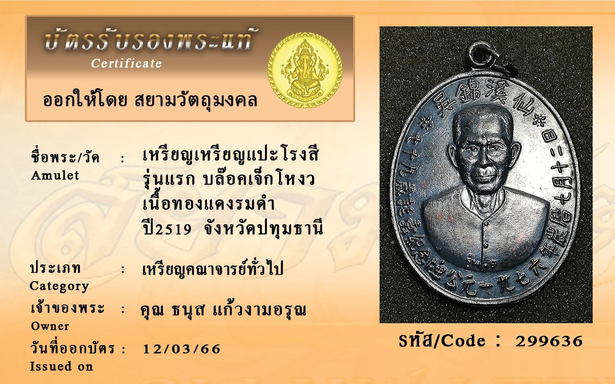 รหัสสินค้า : 299636 เหรียญเหรียญแปะโรงสี รุ่นแรก บล๊อคเจ็กโหงว เนื้อทองแดงรมดำ ปี2519 จังหวัดปทุมธานี