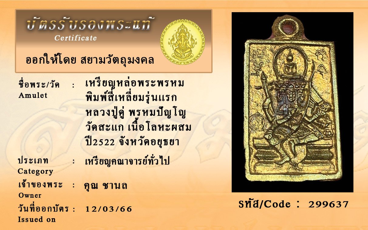 รหัสสินค้า : 299637 เหรียญหล่อพระพรหม พิมพ์สี่เหลี่ยมรุ่นเเรก หลวงปู่ดู่ พรหมปัญโญ วัดสะเเก เนื้อโลหะผสม ปี2522 จังหวัดอยุธยา