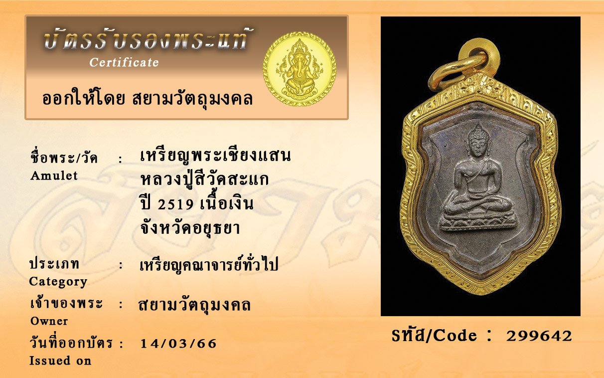 รหัสสินค้า : 299642 เหรียญพระเชียงแสน หลวงปู่สีวัดสะแก ปี 2519 เนื้อเงิน จังหวัดอยุธยา