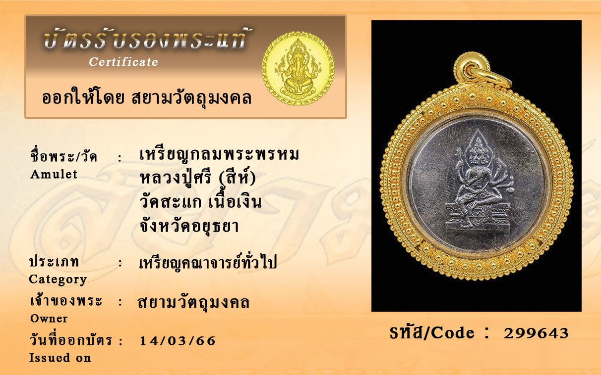 รหัสสินค้า : 299643 เหรียญกลมพระพรหม หลวงปู่ศรี (สีห์) วัดสะแก เนื้อเงิน จังหวัดอยุธยา