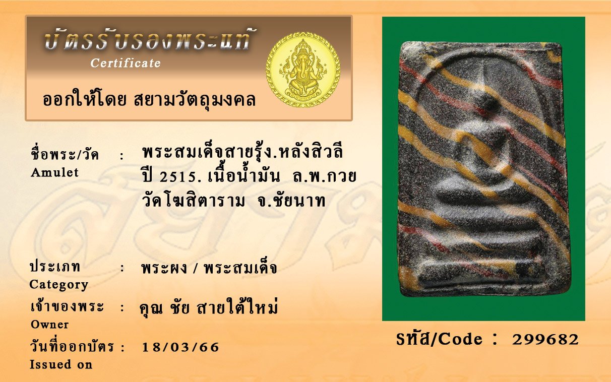 รหัสสินค้า : 299682 พระสมเด็จสายรุ้ง.หลังสิวลี ปี 2515. เนื้อน้ำมัน ล.พ.กวย วัดโฆสิตาราม จ.ชัยนาท