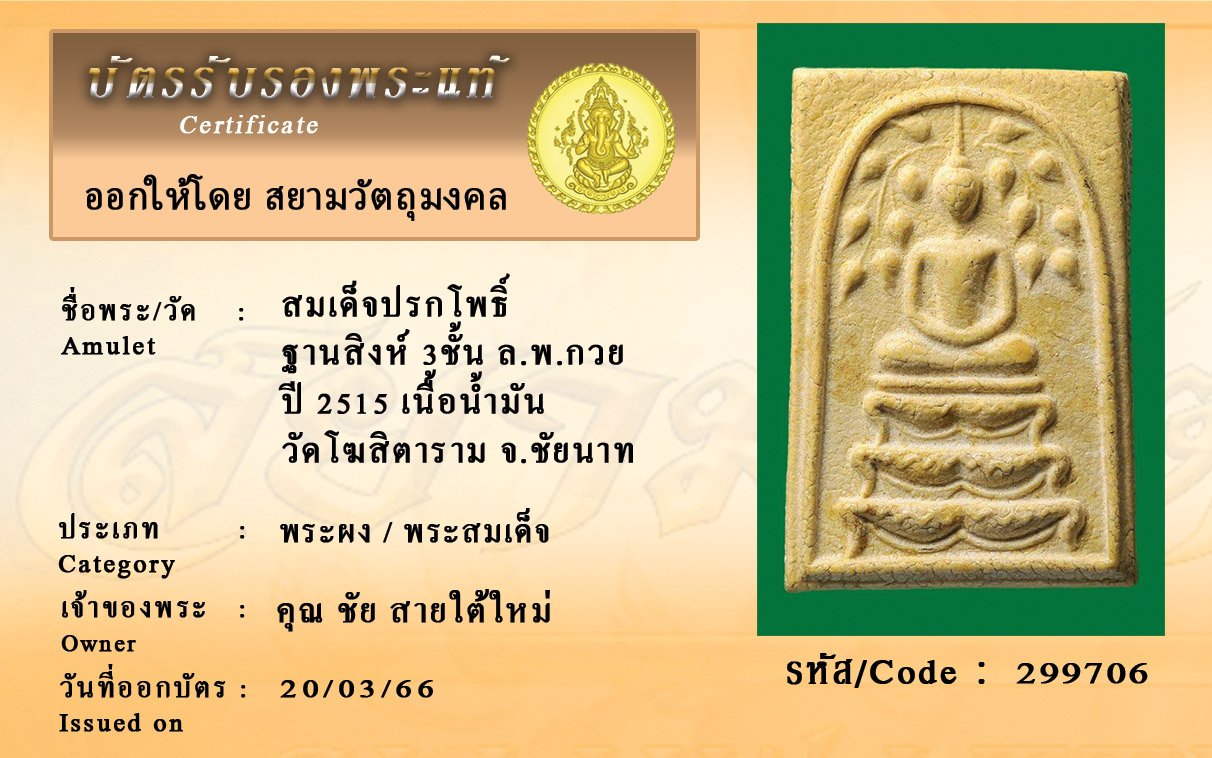 รหัสสินค้า : 299706 สมเด็จปรกโพธิ์ ฐานสิงห์ 3ชั้น ล.พ.กวย ปี 2515 เนื้อน้ำมัน วัดโฆสิตาราม จ.ชัยนาท