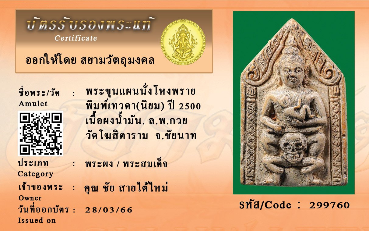 รหัสสินค้า : 299760 พระขุนแผนนั่งโหงพราย พิมพ์เทวดา(นิยม) ปี 2500 เนื้อผงน้ำมัน. ล.พ.กวย วัดโฆสิตาราม จ.ชัยนาท
