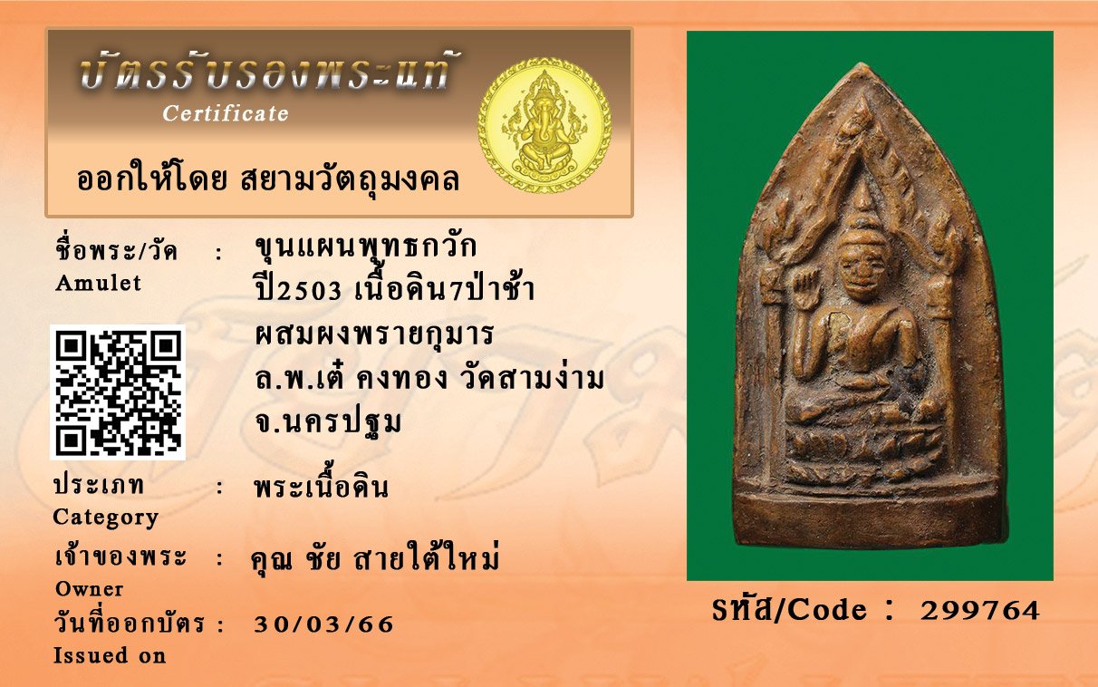 รหัสสินค้า : 299764 ขุนแผนพุทธกวัก ปี2503 เนื้อดิน7ป่าช้า ผสมผงพรายกุมาร ล.พ.เต๋ คงทอง วัดสามง่าม จ.นครปฐม