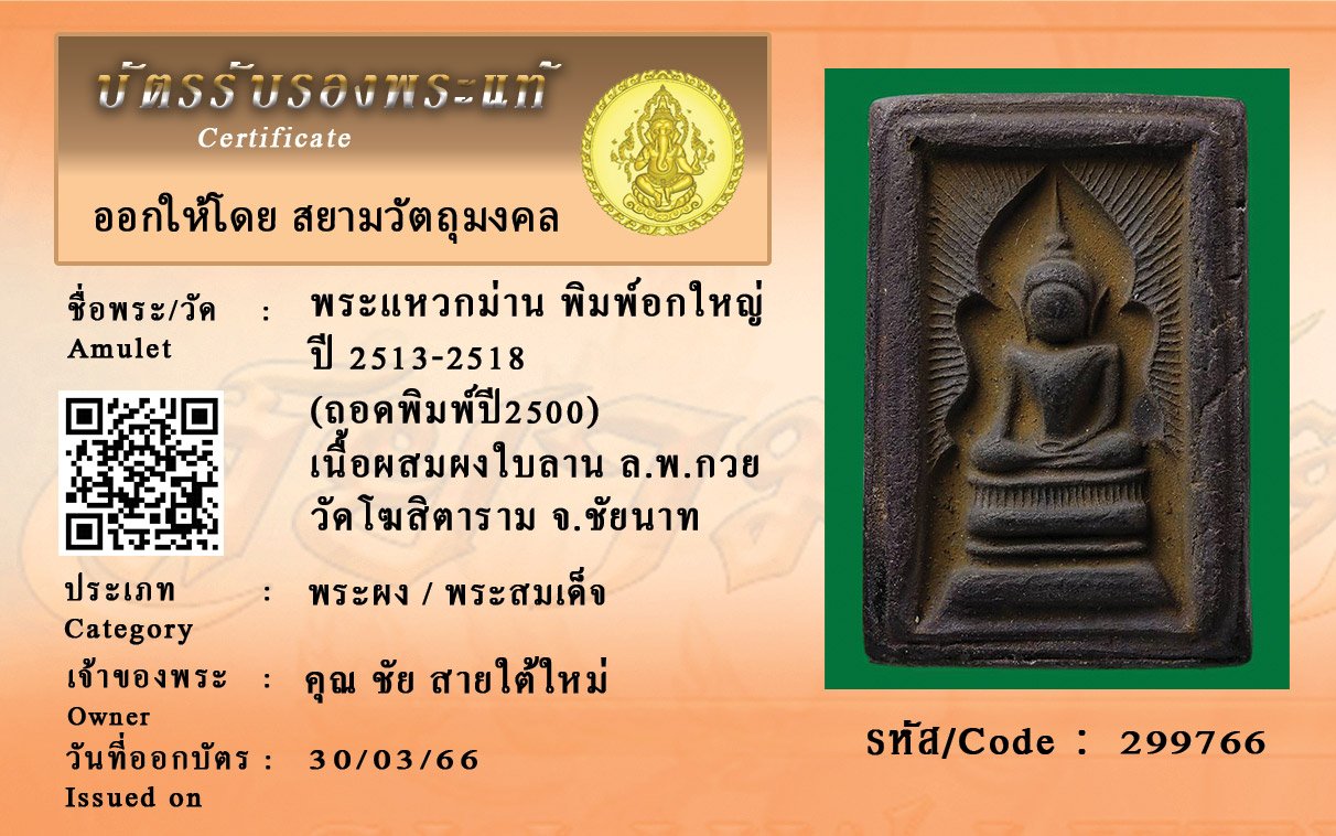 รหัสสินค้า : 299766 พระแหวกม่าน พิมพ์อกใหญ่ ปี 2513-2518 (ถอดพิมพ์ปี2500) เนื้อผสมผงใบลาน ล.พ.กวย วัดโฆสิตาราม จ.ชัยนาท