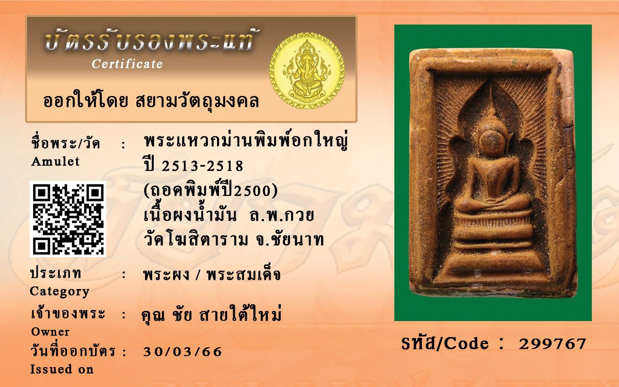 รหัสสินค้า : 299767 พระแหวกม่านพิมพ์อกใหญ่ ปี 2513-2518 (ถอดพิมพ์ปี2500) เนื้อผงน้ำมัน ล.พ.กวย วัดโฆสิตาราม จ.ชัยนาท