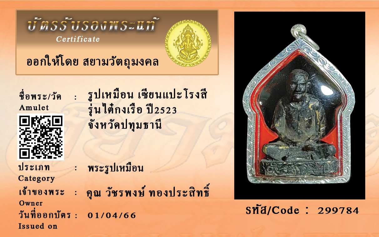 รหัสสินค้า : 299784 รูปเหมือน เซียนแปะโรงสี รุ่นไต๋กงเรือ ปี2523 จังหวัดปทุมธานี