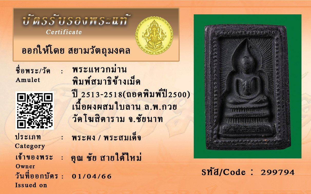 รหัสสินค้า : 299794 พระแหวกม่าน พิมพ์สมาธิข้างเม็ด ปี 2513-2518(ถอดพิมพ์ปี2500) เนื้อผงผสมใบลาน ล.พ.กวย วัดโฆสิตาราม จ.ชัยนาท